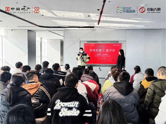 活動中,講解員在中海大廈一樓大廳向?qū)W生們詳細(xì)介紹中海商務(wù)“安全、高效、溫暖”的運(yùn)營服務(wù)標(biāo)準(zhǔn),并逐一講解安管、前臺、工程、保潔等各職能團(tuán)隊(duì)的日常工作內(nèi)容。通過實(shí)地觀察,學(xué)生們深入理解樓宇運(yùn)營團(tuán)隊(duì)如何通過明確分工與緊密協(xié)作,共同保障整棟大廈的安全、有序運(yùn)行。隨后,學(xué)生們前往樓內(nèi)代表企業(yè),深入企業(yè)辦公場景,近距離了解企業(yè)的基本運(yùn)作以及不同崗位員工的日常工作內(nèi)容。