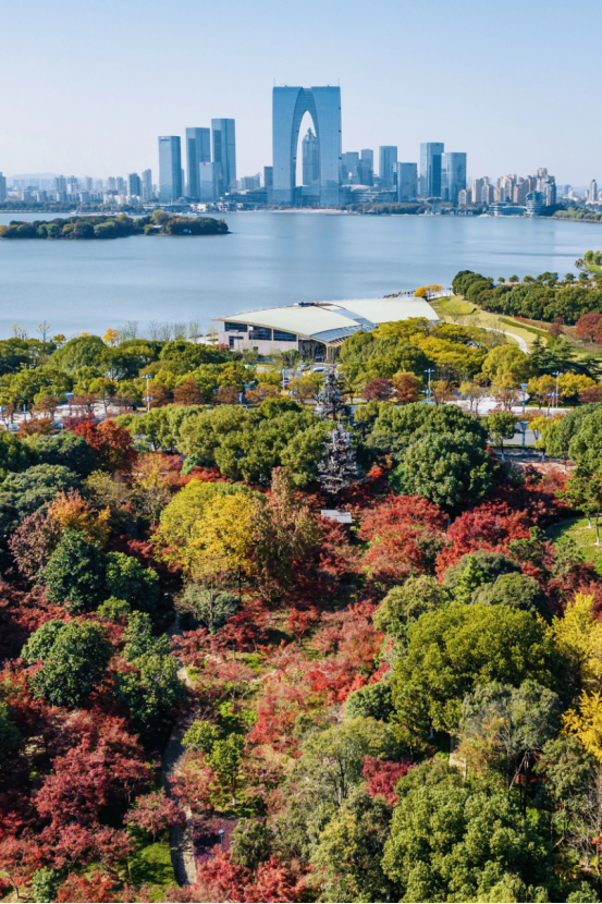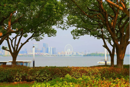 盡日苔階閑不掃,滿園銀杏落秋風。銀杏則是秋日里期待的另一抹亮色,待一簇簇金黃扇葉綴滿枝頭,自然勾勒出天然畫框,恰好將遠處的城市地標框進這幅秋景圖中。