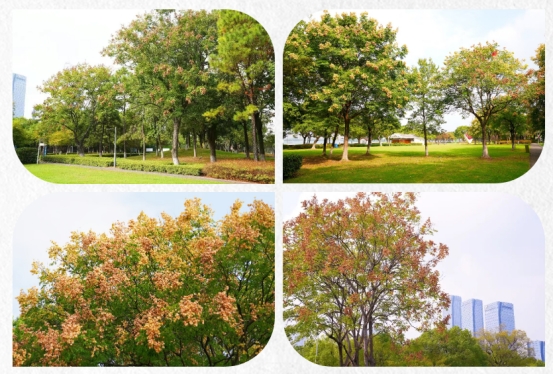 莫怨中秋花事少,秋在枝頭欒樹花。每到秋天,金雞湖畔的欒樹枝頭最先熱鬧起來,翠綠的枝椏間掛滿了橙紅透亮的“小燈籠”,待風輕輕拂過,細碎花瓣便悠悠飄落。