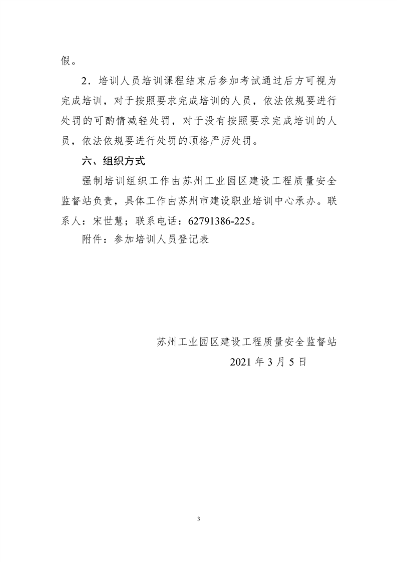 園區質安站關于對存在質量安全突出問題項目相關單位主要管理人員進行強制培訓的通知