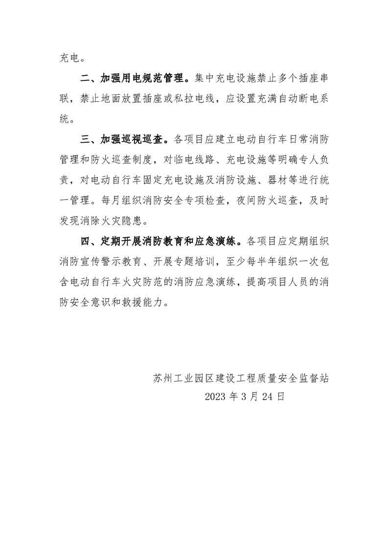 園區質安站關于加強建筑工地電動自行車安全管理的通知
