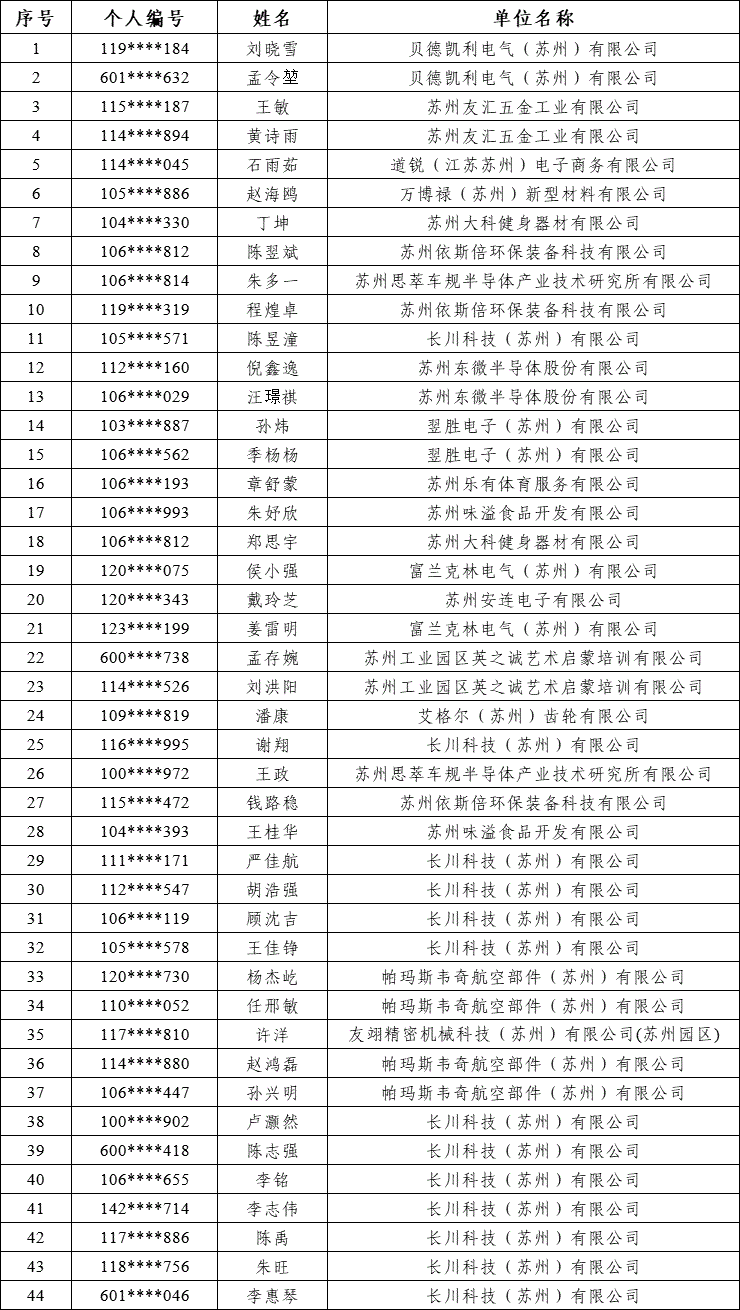按照《省人力資源社會保障廳 省財政廳關于加快落實擴大社會保險補貼范圍政策有關工作的通知》(蘇人社函〔2025〕238號)文件規定,擬對以下符合補貼條件人員進行公示,公示自發布之日起,期限為7天,如對以上公示內容有異議,請向園區就業管理服務中心反映。