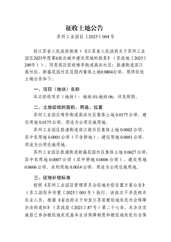 蘇州工業(yè)園區(qū)2025年度第6批次城市建設(shè)用地-征收公告
