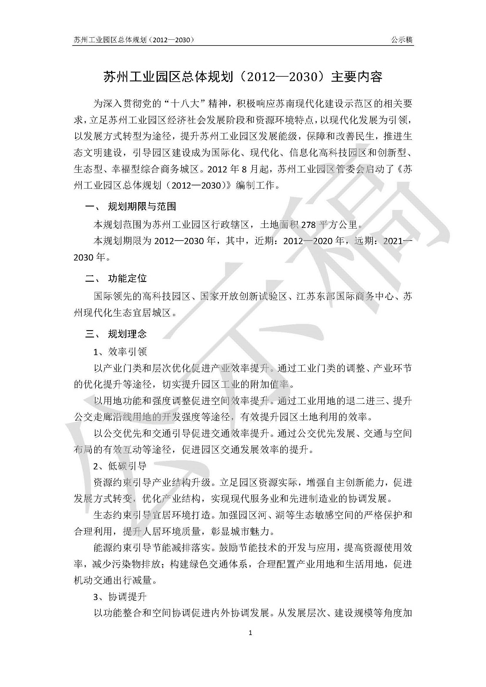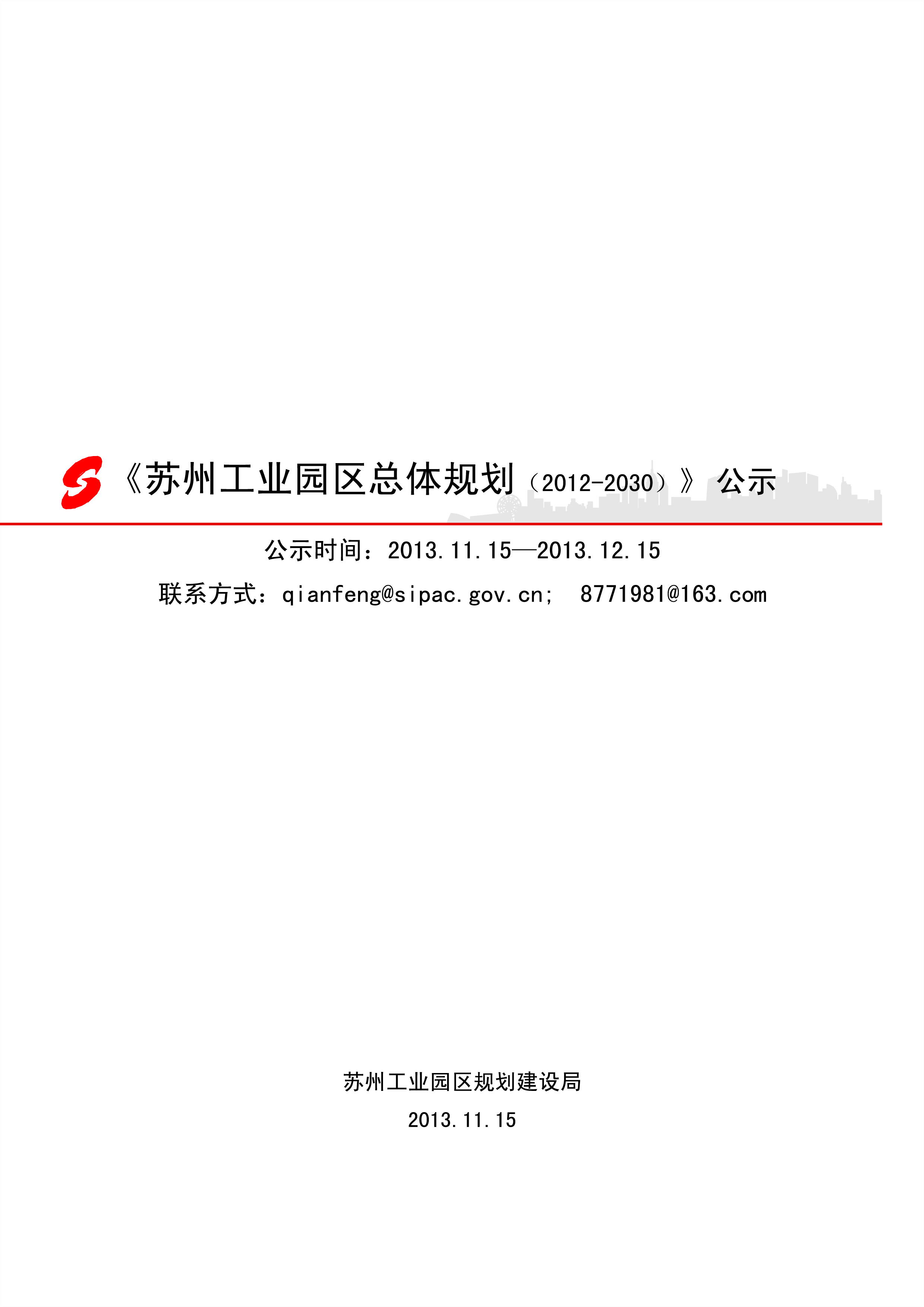 《蘇州工業(yè)園區(qū)總體規(guī)劃(2012-2030)》公示