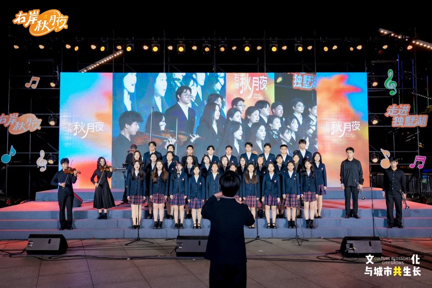 獨(dú)墅湖科教創(chuàng)新區(qū)的校園力量更是成為當(dāng)晚的亮眼風(fēng)景。西交利物浦大學(xué)藝術(shù)協(xié)會合唱團(tuán)、中國人民大學(xué)蘇州校區(qū)合唱團(tuán)以專業(yè)合唱藝術(shù)為橋梁,連接不同文化背景的聽眾,不僅展現(xiàn)了科創(chuàng)區(qū)學(xué)子的青春風(fēng)貌,更成為校園文化與城市活動深度融合的鮮活注腳,為區(qū)域文化活力持續(xù)加碼。