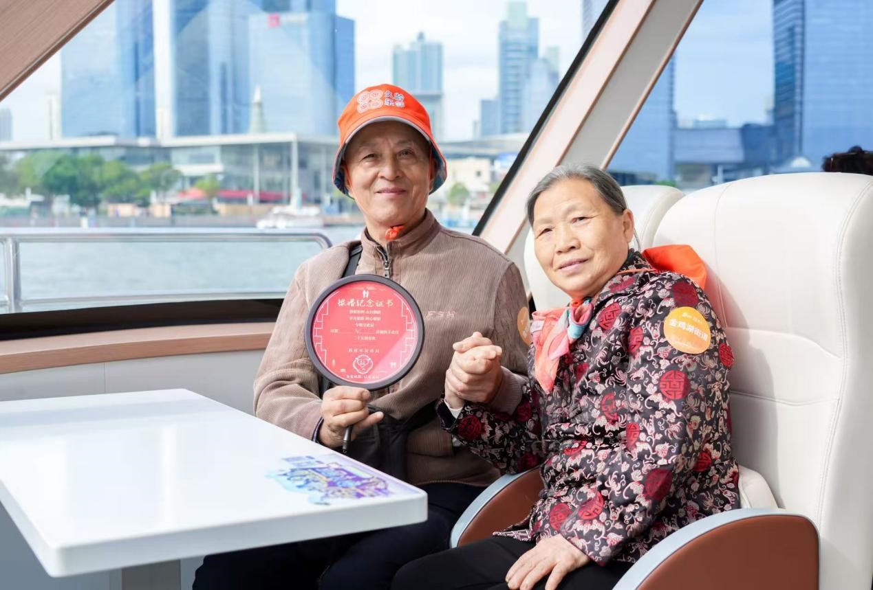 活動(dòng)中,園區(qū)16對(duì)金婚、銀婚夫婦攜手漫步13.14公里的環(huán)金雞湖步道,以腳步丈量城市變遷,用相伴詮釋“一生一世”的深情。從望湖閣的游船體驗(yàn),到月光碼頭邊的閑話家常,再到飛翔雕塑前的合影留念,老人們一路親近自然,一路見證園區(qū)日新月異的發(fā)展圖景。登臨“蘇州之眼”摩天輪,老人們俯瞰園區(qū)全貌,大家紛紛感嘆:“現(xiàn)在的園區(qū)越來越國(guó)際化,每次來都有新驚喜!”