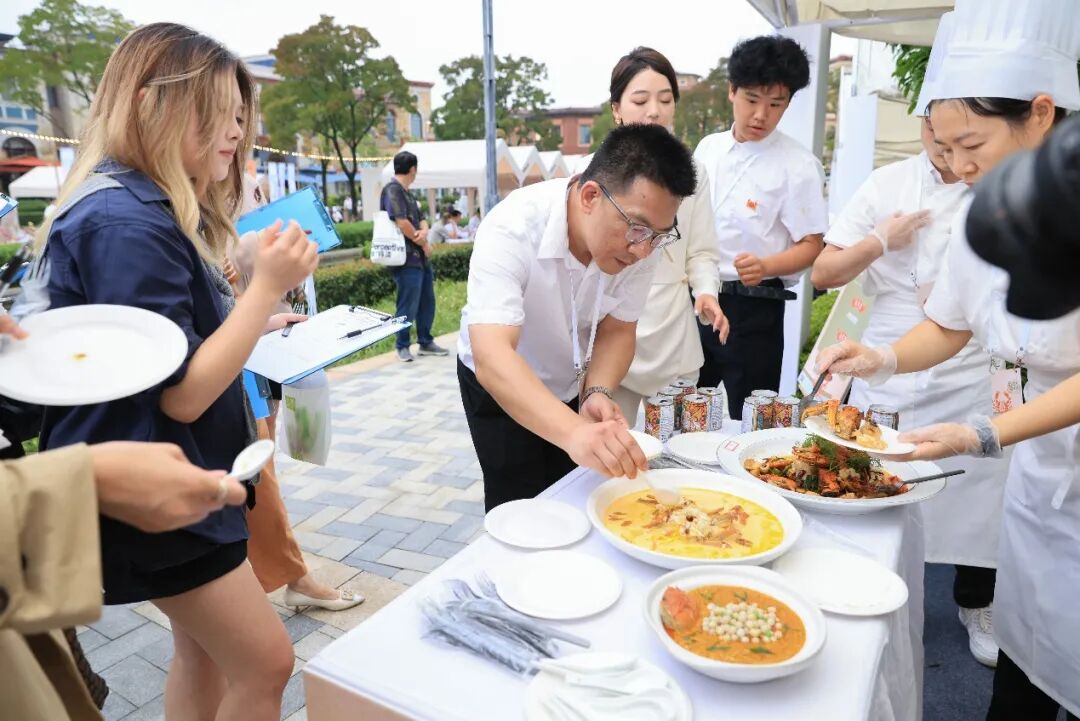 除了廣受市民游客青睞的“蟹味美學(xué)”展示菜區(qū)域,河對岸的“澄心至味”品鑒菜區(qū)域更是一片熱鬧非凡的景象。