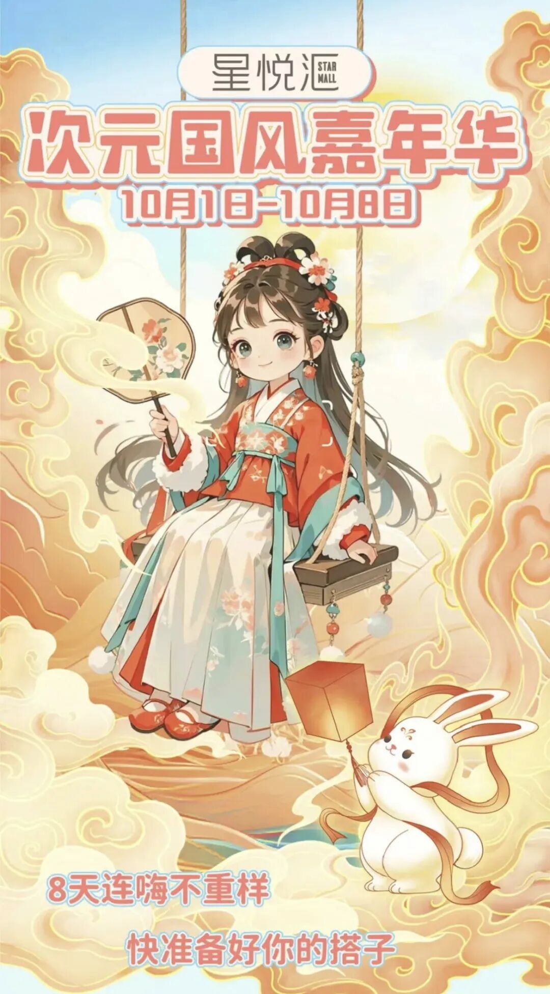 非遺手作體驗讓參與者感受傳統技藝魅力,6場漢服主題巡游再現中式美學韻味,24場定點舞臺演繹輪番上演,30+國風市集攤位琳瑯滿目,市民可賞燈、趕集、聽曲、游園,重啟中式浪漫。二次元圣地星悅匯則推出“次元國風嘉年華”,8天活動不重樣,見證“次元壁破裂”。國風音樂舞蹈演出、西浦動漫社巡游、lolita茶會時光、棉花娃娃主題日滿足Z世代們不同興趣需求,百萬粉絲博主將帶來Kpop舞蹈秀,邀市民一同“撒野”。