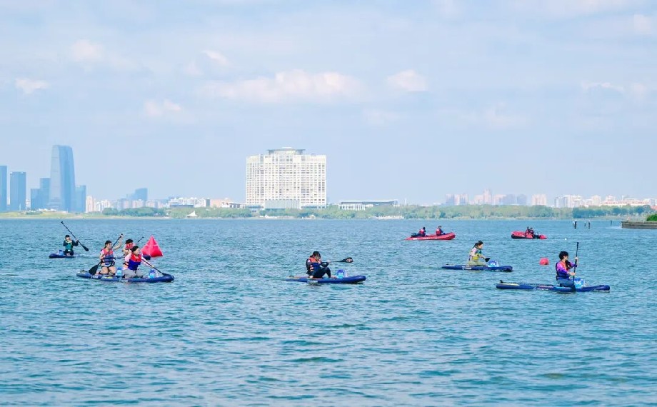 今年夏天,劃槳板、吹湖風、追日落成為獨墅湖上的新風景,讓這里成為年輕人揮灑活力、釋放激情的潮流目的地。嘉年華依托獨墅湖優質水域資源,打造了高校槳板爭霸賽、金秋龍舟賽等系列水上運動盛宴,掀起熱潮。