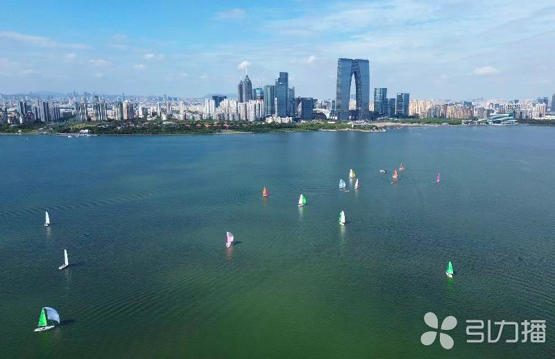 金雞湖面,彩帆競逐。蘇報融媒記者陳燕/攝制
