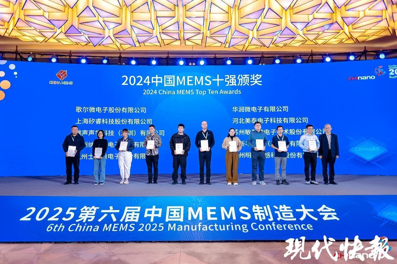 活動(dòng)為2024中國(guó)MEMS十強(qiáng)企業(yè)頒獎(jiǎng)。作為行業(yè)創(chuàng)新發(fā)展的“排頭兵”,十強(qiáng)企業(yè)以技術(shù)突破與產(chǎn)業(yè)貢獻(xiàn)為MEMS領(lǐng)域注入強(qiáng)勁動(dòng)能,其成長(zhǎng)軌跡也見證了國(guó)內(nèi)MEMS企業(yè)的壯大歷程。其中,蘇州敏芯微電子技術(shù)股份有限公司、蘇州納芯微電子股份有限公司、蘇州明皜傳感科技股份有限公司三家企業(yè)均來自蘇州工業(yè)園區(qū),彰顯園區(qū)在MEMS產(chǎn)業(yè)領(lǐng)域的雄厚實(shí)力。