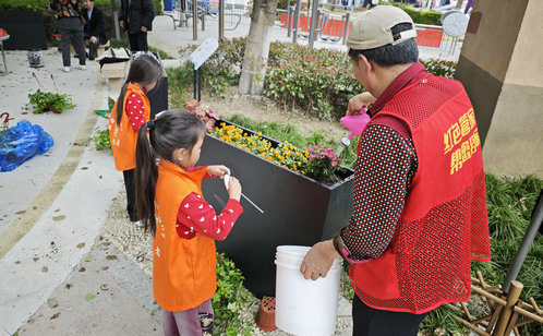 淞源社區(qū)友鄰公園自建成以來,便成為居民日常散步、親子游樂和鄰里社交的熱門場所。然而,園內(nèi)綠植品質(zhì)提升的問題一直備受居民關注。圍繞居民需求,社區(qū)迅速行動,號召紅色管家志愿服務隊與居民共同栽種常春藤、月季等花木100余株,并在友鄰公園特別設置綠植成長區(qū),鼓勵居民認領養(yǎng)護,實施共植共管模式,讓居民在基層治理中實現(xiàn)從“旁觀者”到“參與者”的角色轉(zhuǎn)變。