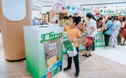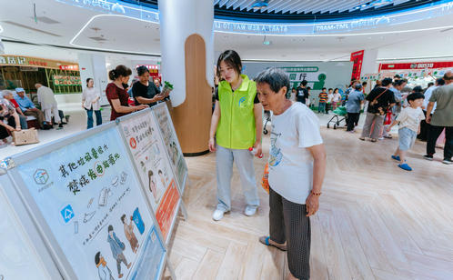 趣味游戲區(qū)的創(chuàng)意設計亮點頻出。居民們手持打卡地圖,穿梭于“垃分視力表”“分類大轉(zhuǎn)盤”“綠色補給站”等八大互動點位,通過趣味測試、知識問答、投擲游戲等方式邊玩邊學。“‘瓶’什么都給我”專區(qū)人氣爆棚,居民王阿姨用積攢的飲料瓶兌換了綠蘿,笑得合不攏嘴。“城投再生”“綠色補給站”和“舊物煥新”專區(qū)也深受居民青睞,居民們拎著紙箱、舊衣物排隊兌換環(huán)保袋、文具等實用物品,直觀感受到“垃圾是放錯位置的資源”。游戲化體驗不僅提升了垃圾分類知識的趣味性和互動性,更讓居民在輕松愉悅的氛圍中掌握分類技巧、提升環(huán)保意識。針對還不太熟悉如何正確分類的居民,志愿者則一對一講解垃圾分類知識,實現(xiàn)寓教于樂“零距離”。此外,志愿者們還同步宣傳倡導“光盤行動”“限塑”“減少使用一次性用品”等源頭減量、簡約適度的生活方式。