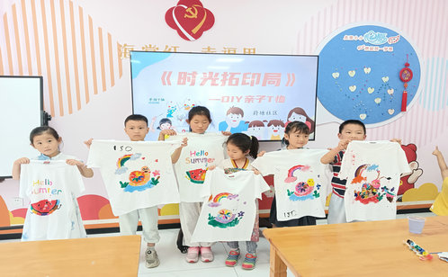 在“時光拓印局”主題活動現(xiàn)場,“紅管”志愿者耐心指導(dǎo)著拓印技巧,幫助每個家庭創(chuàng)作出獨具特色的作品。創(chuàng)作過程中,家長和孩子們在純白T恤上揮灑創(chuàng)意,有的以傳統(tǒng)紋樣為靈感繪制精美圖案,有的則發(fā)揮想象力用鮮艷色彩描繪童趣世界。這場活動不僅讓孩子們體驗到動手制作的樂趣,增進了親子感情,更讓傳統(tǒng)文化以生動的方式融入日常生活。