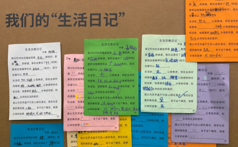 “我記憶中的社區看起來是彩色的,家是幸福的味道?!边@是展板上一位居民寫下的“生活交換日記”。45份生活日記,45種對于社區生活的不同見解,正如居民代表史保利提到,“這不僅僅是一場藝術活動,更是一次走進自己、走進鄰里、走進社區的奇妙的旅程。”本次“藝術畫像計劃”突破舊有場館界限,深入社區肌理,成為每一個普通人參與公眾表達的媒介,讓居民們從“被看見”中獲得歸屬感,從日常分享中產生共鳴,真正發自內心的認同“藝術就在身邊”。