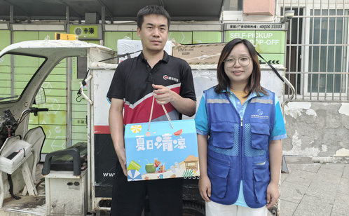 炎炎夏日,驕陽(yáng)似火,新業(yè)態(tài)從業(yè)者們依舊穿梭在大街小巷,為居民生活帶來(lái)便利。為了傳遞對(duì)新業(yè)態(tài)從業(yè)人群的關(guān)愛(ài),表達(dá)對(duì)他們的敬意,淞潭社區(qū)暖心開(kāi)啟“夏日送清涼”騎士節(jié)愛(ài)心活動(dòng),貼心籌備了包含生活用品、避暑產(chǎn)品等物品的夏日清涼禮包。活動(dòng)現(xiàn)場(chǎng),熱浪襲人,社區(qū)專職網(wǎng)格員為正在轄區(qū)內(nèi)奔波忙碌的新就業(yè)群體送上滿含心意的清涼禮包。“天熱千萬(wàn)注意防暑!”暖心的話語(yǔ)伴隨著沉甸甸的禮包一一送到外賣騎手、快遞員等新業(yè)態(tài)人群手中。這份“清涼”不僅驅(qū)散了夏日的燥熱,更讓他們?cè)诿β档墓ぷ髦懈惺艿缴鐓^(qū)的關(guān)懷與敬意,讓奔波的路上多了一份溫暖與動(dòng)力。