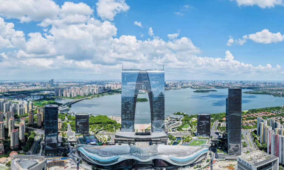作為水鄉上崛起的現代化新城,園區河流縱橫、水網密集,擁有金雞湖、獨墅湖、陽澄湖等骨干河流,湖面與周邊錯落的生態景觀帶相映成趣,勾勒出了一幅“人水和諧”的生態畫卷。