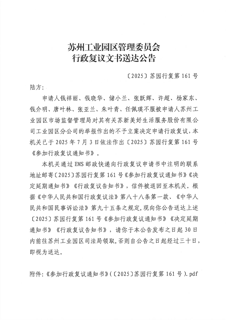 行政復議文書送達公告