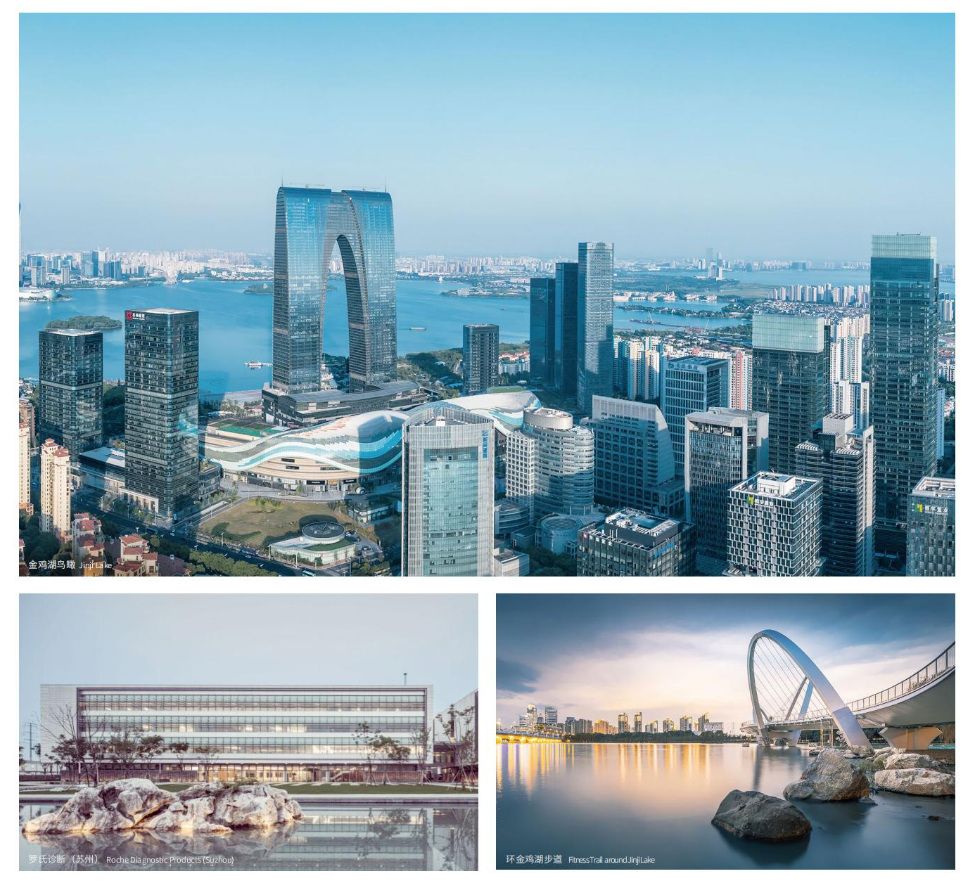 以金雞湖為核心展開,環金雞湖區域布局中央商務區,構成園區的城市級中心;圍繞80平方公里“中新合作區”,布局商務、科教創新、旅游度假、高端制造與國際貿易四大功能板塊,形成“產城融合、區域一體”的城市發展架構。