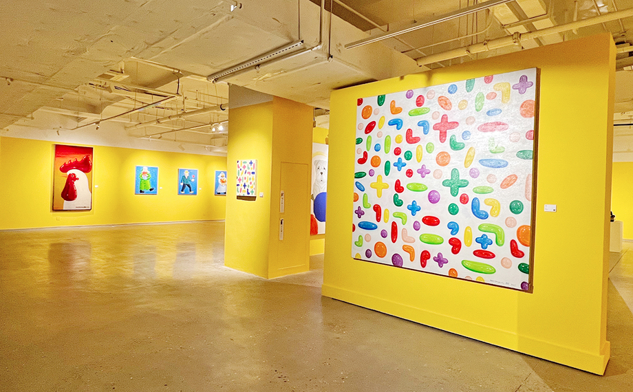 走進展廳,波普藝術的鮮明色彩、涂鴉藝術的自由表達與潮玩IP的可愛萌趣相互交融,仿佛進入一個“異托邦”的平行世界。“情書”“國際玩笑”“有錢花”“FAFA”“猿腦波”……每一件作品,既映射著被消費主義、社交媒體和品牌敘事包裹的現實,又承載著藝術家對潮流文化的獨特思考。現場觀眾仿佛置身于多元立體的藝術空間,不時駐足拍照、交流探討,現場反響熱烈。