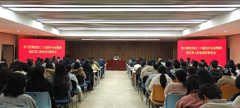 12月1日上午,學(xué)習(xí)貫徹黨的二十屆四中全會精神園區(qū)黨工委宣講團(tuán)報告會在投控公司舉行,園區(qū)黨工委宣講團(tuán)成員、投控公司黨委書記、董事長錢曉紅作宣講報告。