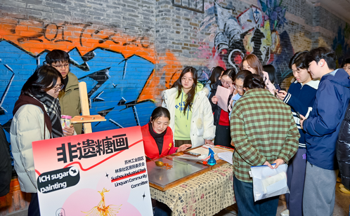 為推動青年以現(xiàn)代方式詮釋中華優(yōu)秀傳統(tǒng)文化,林泉社區(qū)深挖斜塘非遺與民俗底蘊,搭建傳統(tǒng)文化與青春創(chuàng)意對接平臺,聯(lián)動西浦學子將非遺文化、民俗符號與現(xiàn)代審美、潮流玩法結合,讓新春元素煥新,勾勒文化與青春交融的市集圖景。年味食坊里,年味糖葫蘆、蘇式海棠糕、非遺糖畫香甜誘人、引人駐足;巧手工坊內(nèi),絨花、漆扇、剪紙相映成趣,西浦學子現(xiàn)場揮毫書寫春聯(lián)福字,傳遞新春祝福;國潮創(chuàng)享攤位上,VR書法、中國結、紙燈籠、馬勺臉譜等體驗項目,讓大家在動手間解鎖傳統(tǒng)文化魅力;“青春普法空間”攤位開展法律咨詢與反詐宣傳,切實提升大家的法治素養(yǎng)與自我防護能力。