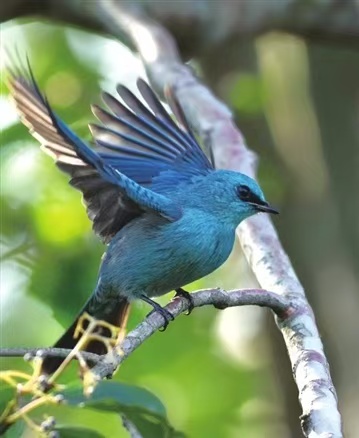 據了解,銅藍鹟主要分布于印度至中國南方及東南亞地區,常棲息于山地森林的樹冠層。其雄鳥羽色鮮艷具金屬光澤,雌鳥則相對樸素,以飛行類昆蟲為主要食物。此次在蘇州城市公園中被穩定觀測到,也反映出城市生態環境持續改善為鳥類提供了更多棲息可能。