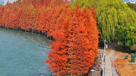 As the cool breeze whispers, a splendid tapestry painted by red maples, golden ginkgos and russet-red dawn redwoods gradually unfolds across SIP. Between modern architecture and serene lakeshores, the park reveals a rich, poetic landscape of the season.