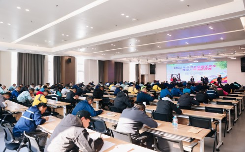 競賽設(shè)置預(yù)賽與決賽兩個(gè)階段,全方位檢驗(yàn)選手綜合素養(yǎng)。預(yù)賽環(huán)節(jié)采用“理論+實(shí)操”的考核模式:理論測試涵蓋叉車安全操作規(guī)程、設(shè)備日常維護(hù)、應(yīng)急處置流程及相關(guān)法律法規(guī)知識,重點(diǎn)考察選手安全理論功底與合規(guī)意識;實(shí)操項(xiàng)目為電動(dòng)平衡重叉車帶托盤競速繞樁,選手需在5分鐘內(nèi)完成“叉取托盤—轉(zhuǎn)運(yùn)堆疊—指定存放—倒庫停車”全流程,考驗(yàn)精準(zhǔn)操控與高效作業(yè)能力。經(jīng)綜合評定,40名選手憑借過硬實(shí)力脫穎而出,晉級決賽。