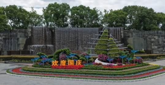 一座以“揚帆逐浪,生態和諧”為理念打造的國慶主題綠雕在國賓路路口正式落成。該景觀以浪花、船帆為造型主體,搭配游魚、飛鳥等自然元素,生動傳遞出園區勇立潮頭、奮發進取的精神風貌。綠雕基座部分綜合運用近3萬盆時令花卉與精品苗木,包括一串紅、矮牽牛、鼠尾草、歐月、向日葵等多個品種,通過科學配植與藝術構圖,形成色彩鮮明、層次豐富的花海浪濤意象,進一步提升核心區域景觀品質。