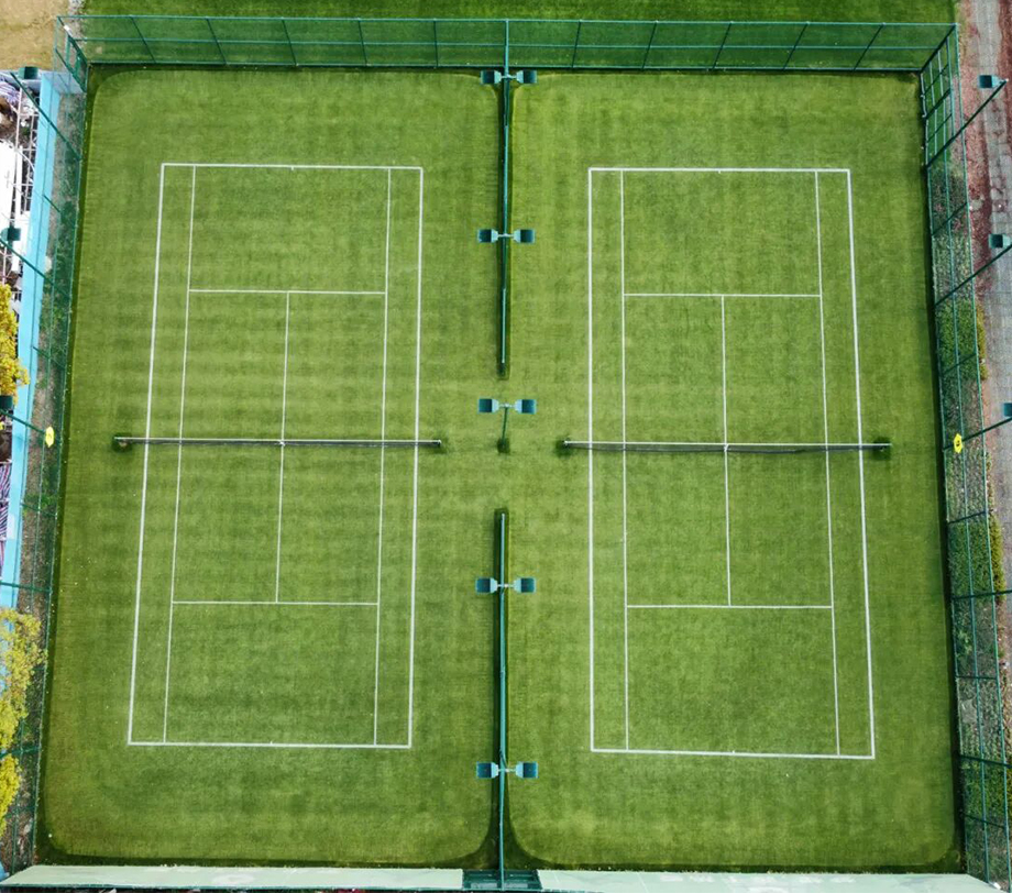 半島足球公園網球場是目前國內最高標準天然草網球場之一,長三角地區第二個按照溫網級別建造的6片濱湖天然草網球場,草種選擇美國進口ITGAP認證的TIfEagle(暖季型草種),秋季交播多年生黑麥草(冷季型草種),來保證網球場一年四季常綠。
