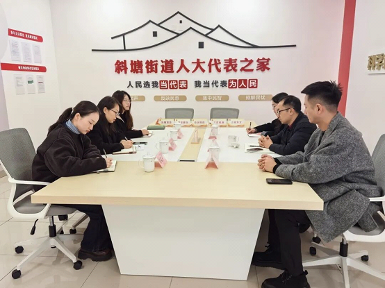 考察組一行來到斜塘民眾服務中心,通過實地走訪、現場問詢等方式,詳細了解中心的服務流程規范、功能設施布局等情況;隨后實地考察了斜塘街道基層立法聯系點,并在此基礎上深入考察了解了“人大代表之家”的陣地建設、活動開展情況等。